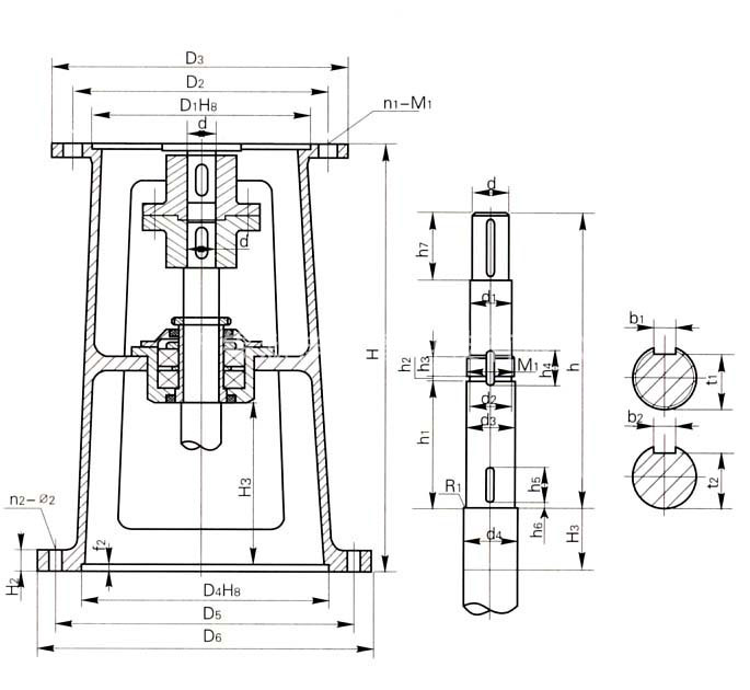 本機架系列的JXLD型適用與XLD型擺線針傫行星減速機聯接,JBLD型適用于與BLD型擺線減速機相連接。為使攪拌軸與軸承室裝配。維修方便,本公司對軸承室結構進行改進設計。同時對BLD2、BLD3、BLD4與相配的機架JBLD2、JBLD3、JBLD4的軸承室加大。使之與較粗的攪拌軸相一致。