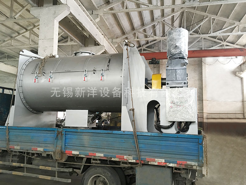 犁刀混合機,由主軸減速機帶動犁刀組軸運動,一部分將物料沿筒體圓周作徑向運動,同時將物料沿犁刀兩側的法線方向拋出,另一部分被拋出物料經飛刀組時,被高速旋轉的飛刀剪切攪拌而強烈也適合粘狀、稠狀、塊狀固—固(粉體與粉體)、固—漿(粉體與膠漿液)的物料或密度差異較大的物料也能混合。
